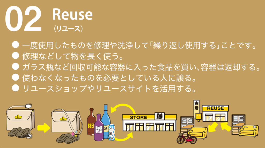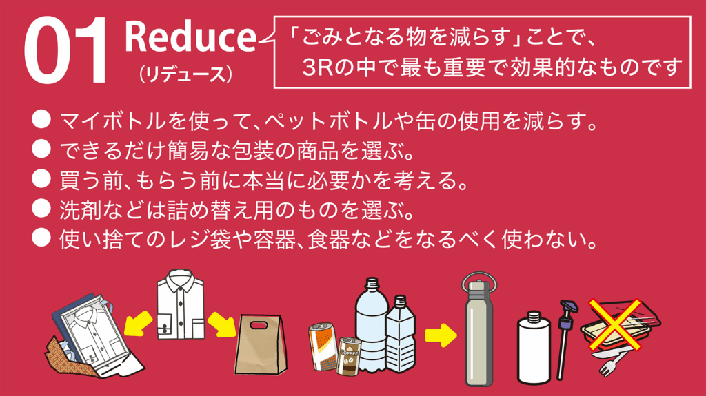 3R(スリーアール)とは、下記の「3つのR」に取り組むことでごみの減量化を目指していくものです。