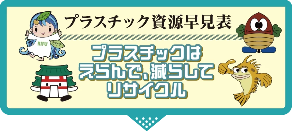 下記のプラスチック資源分別早見表を確認いただくか